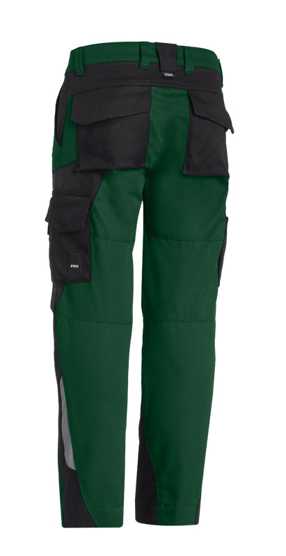 FHB HUGO Arbeitshose Kinder, extra für FHB entwickeltes Gewebe im perfekten Mischungsverhältnis von Baumwolle und Polyester, ergonomisch perfekte Schnittführung bietet mehr Bewegungsfreiheit, verstellbarer Hosenbund, Knieverstärkung aus 100% Polyamid (Cordura), rechts eine Zollstocktasche, links eine verschließbare Volumentasche, zwei Gesäßtaschen, einfache Möglichkeit die Hose zu verlängern, innovative FHB-Pattentaschenverschlusslösung