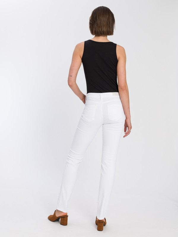 Weisse Damen Jeans Anya, mit Stretch 98% Bw/2%Elastan. Die Hose ist schmal geschnitten, durch das Elasthan aber super bequem. Der trendige hohe Bund verlängert das Bein und sitzt dadurch sehr gut. Die Passform ist bei uns im Laden 100 fach erprobt.